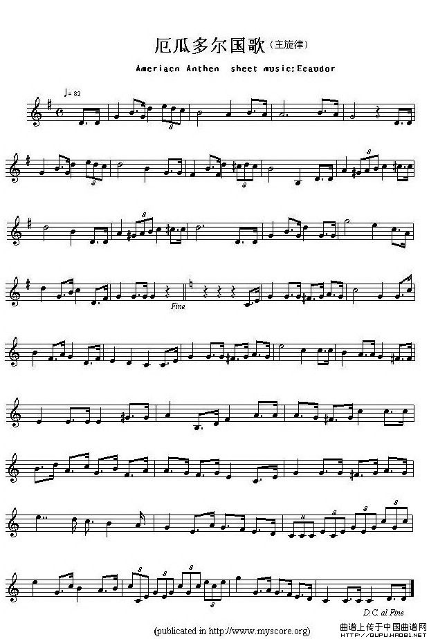 各国国歌主旋律:厄瓜多尔(Ameriacn Anthem sheet music:Ecaudor)