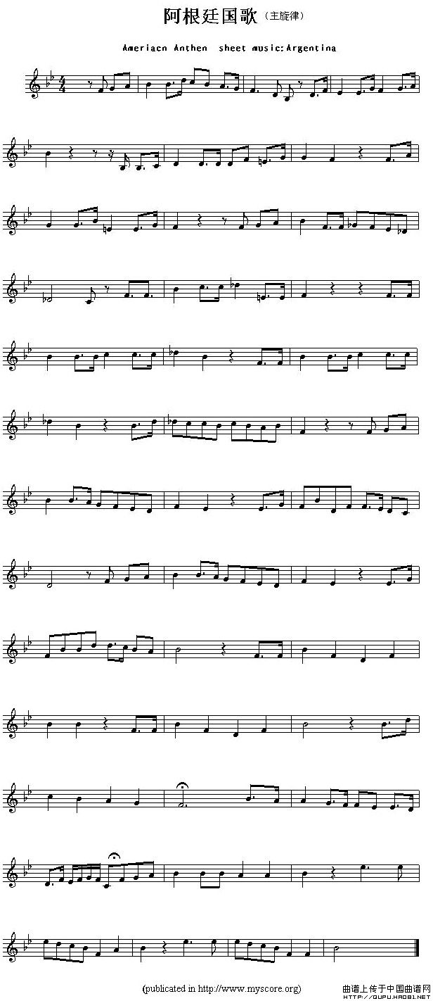 各国国歌主旋律:阿根廷(Ameriacn Anthem sheet music:Argentina)