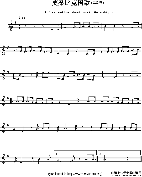 各国国歌主旋律:莫桑比克(Arfica Anthem sheet music:Mozambique)相关五线谱