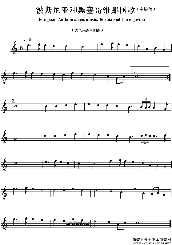 各国国歌主旋律:波斯尼亚和黑塞歌维那
