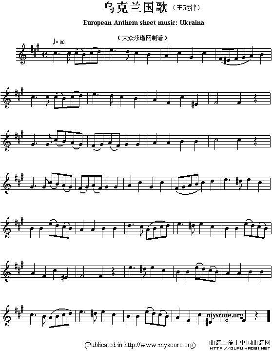 各国国歌主旋律:乌克兰(European Anthem sheet music:Ukraina)