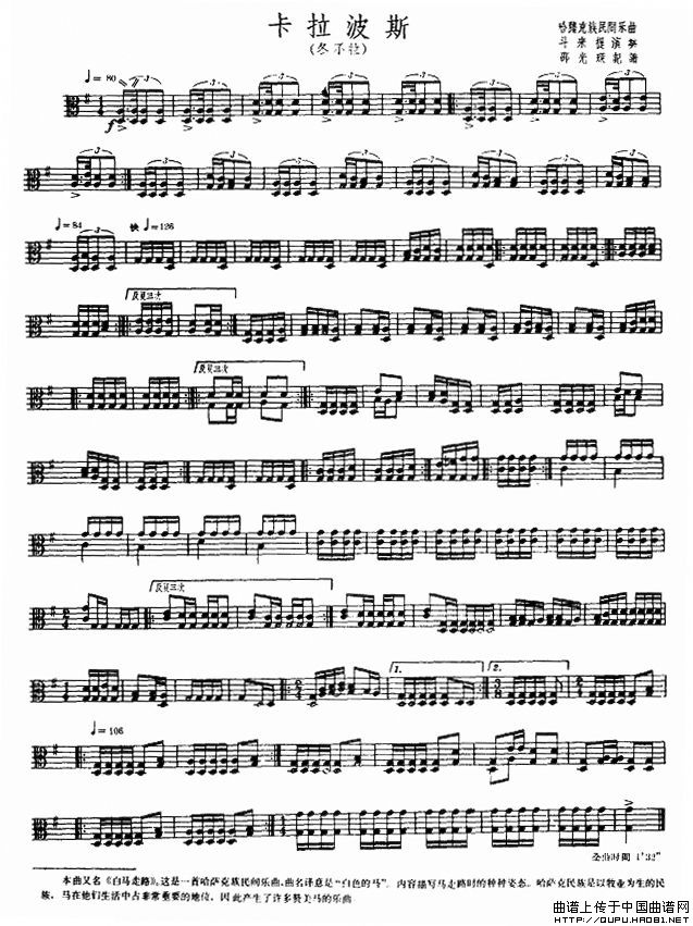 卡拉波斯(冬不拉、五线谱)相关五线谱