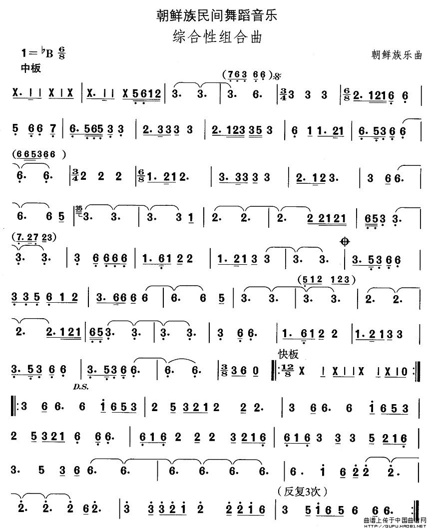 中国民族民间舞曲选(十一)朝鲜族舞蹈:综合性组合)相关五线谱