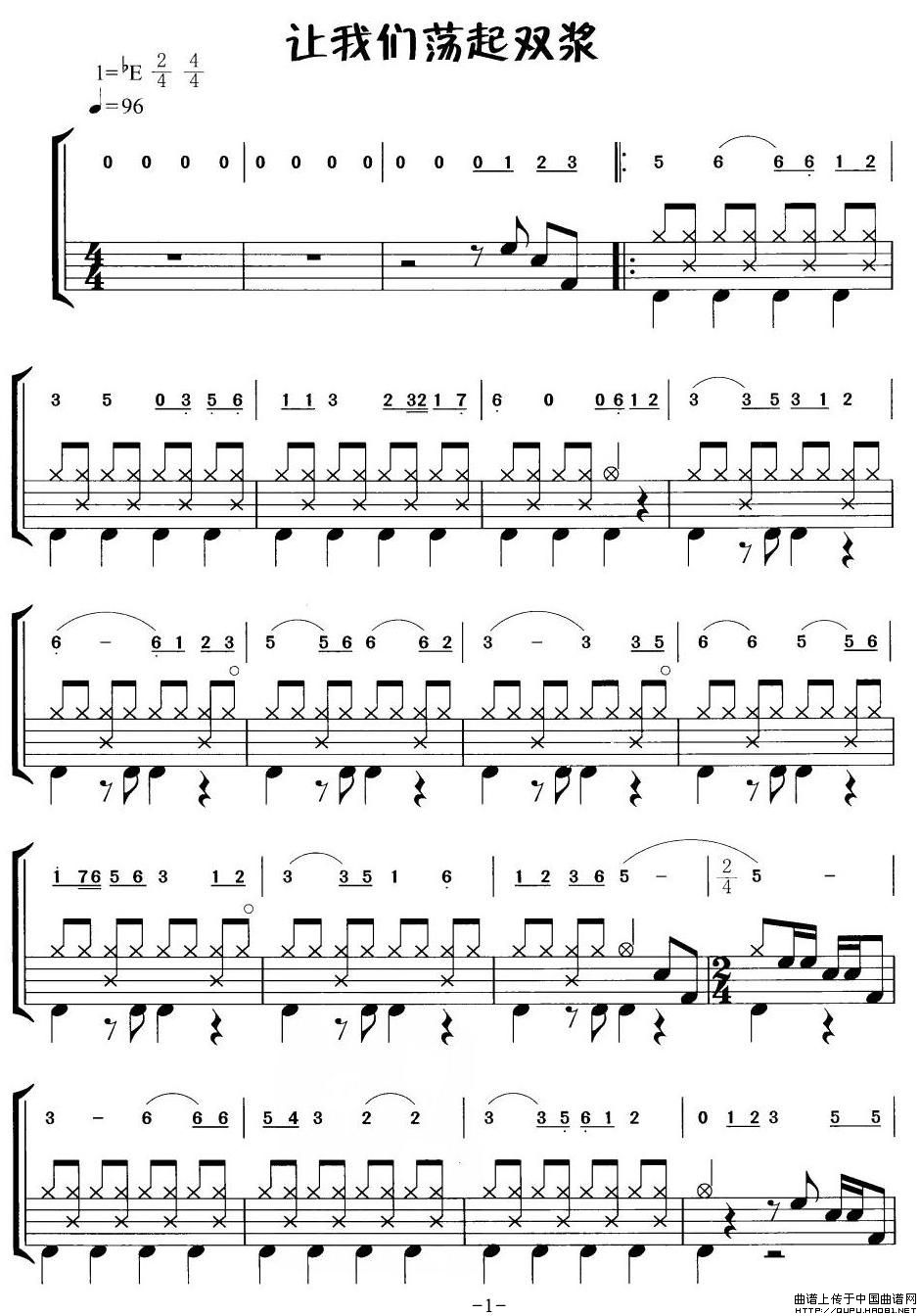 让我们荡起双桨(摇滚乐鼓谱)