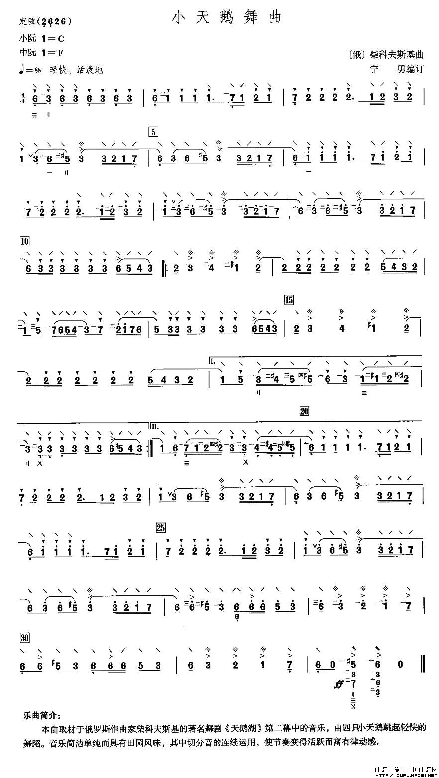 小天鹅舞曲(阮谱)相关五线谱