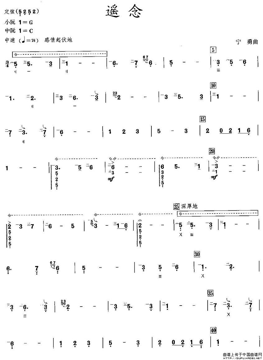 遥念(阮谱)相关五线谱