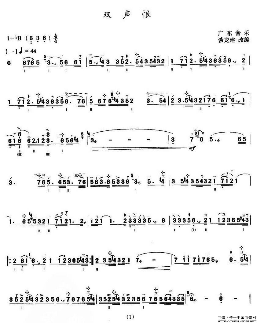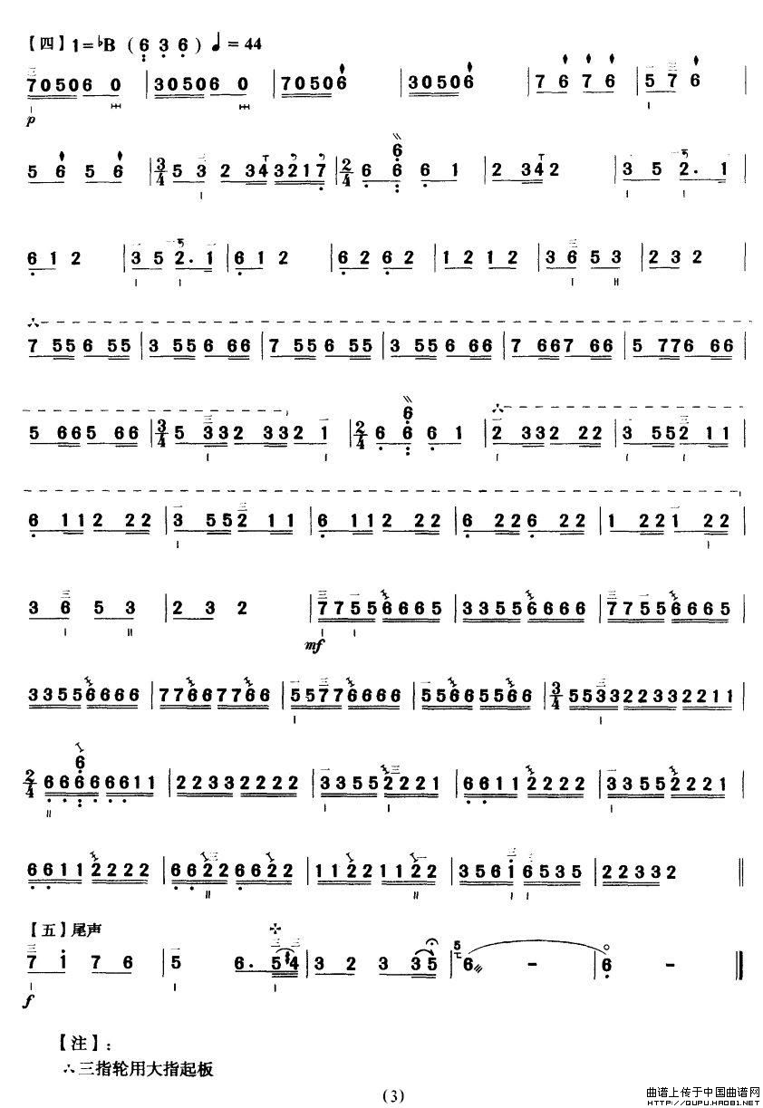 彩云追月(三弦、柳琴与笛子主旋合成谱)