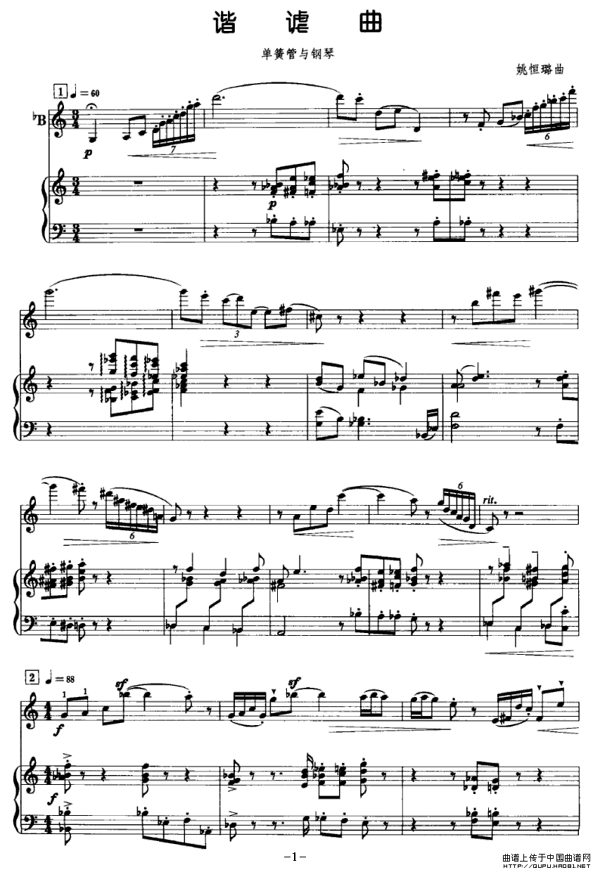 谐谑曲(单簧管+钢琴)