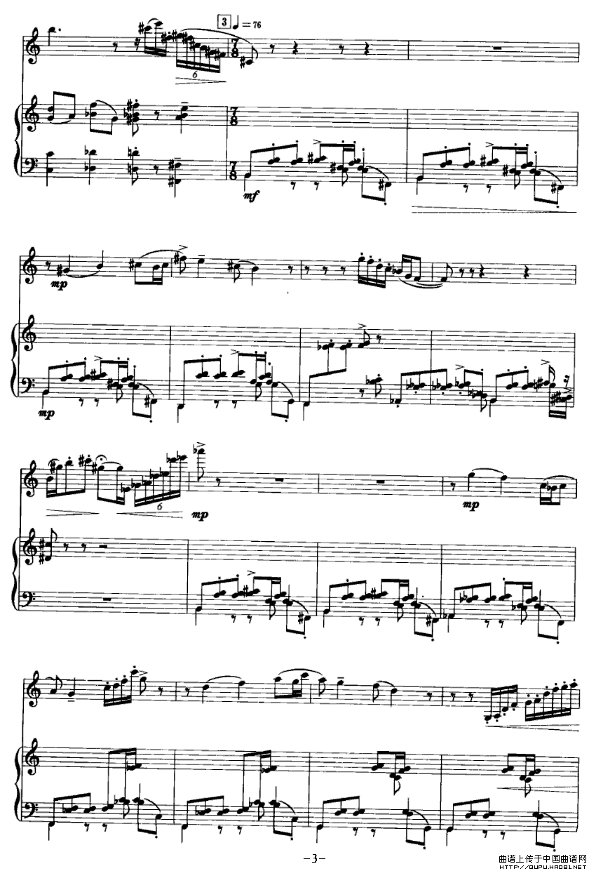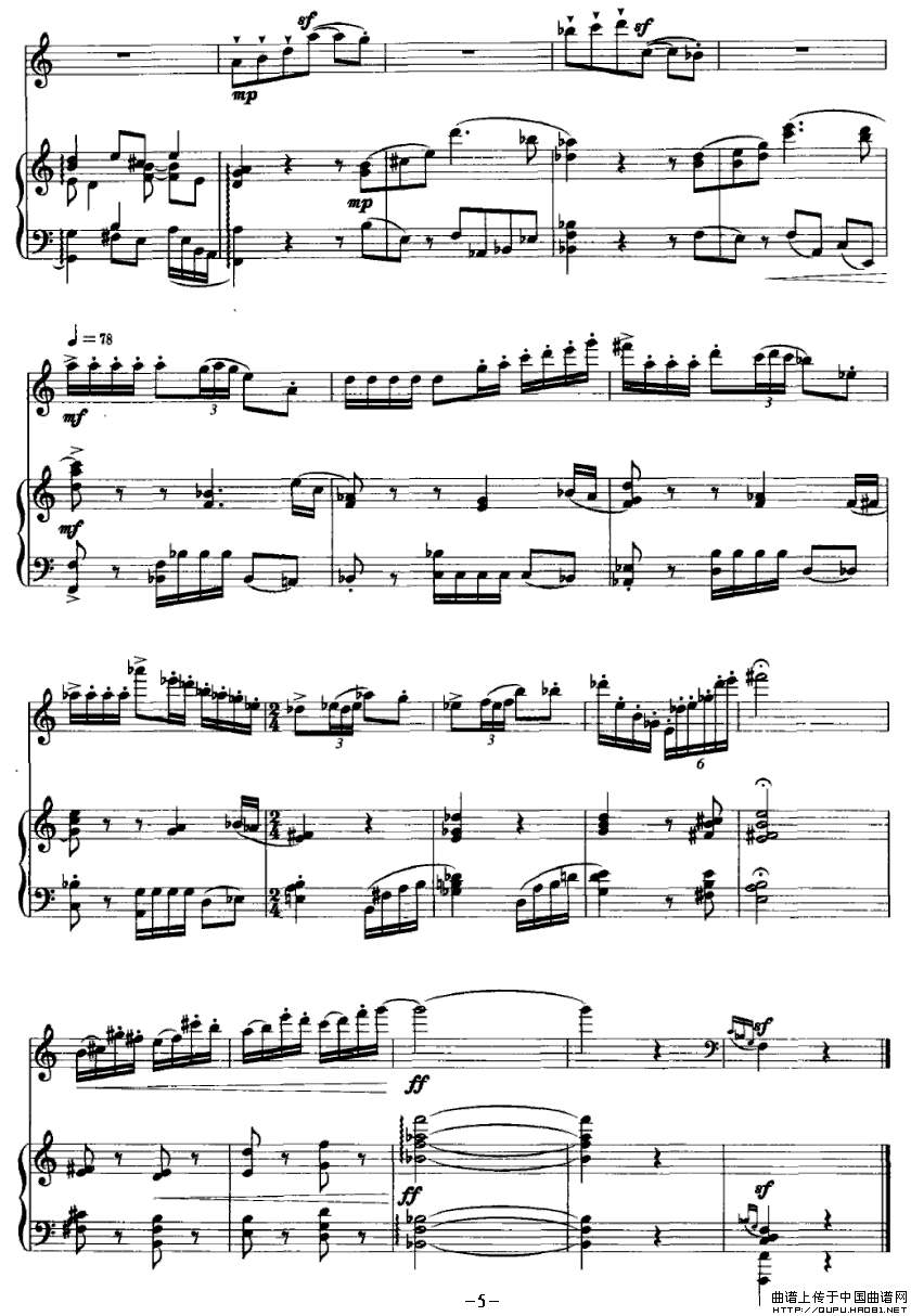 谐谑曲(单簧管+钢琴)相关五线谱