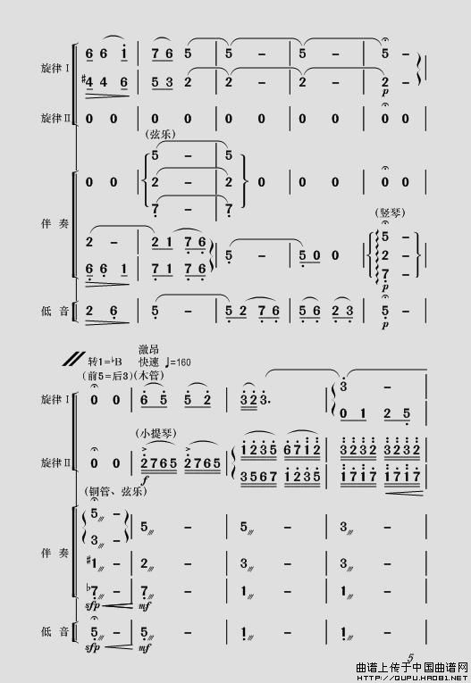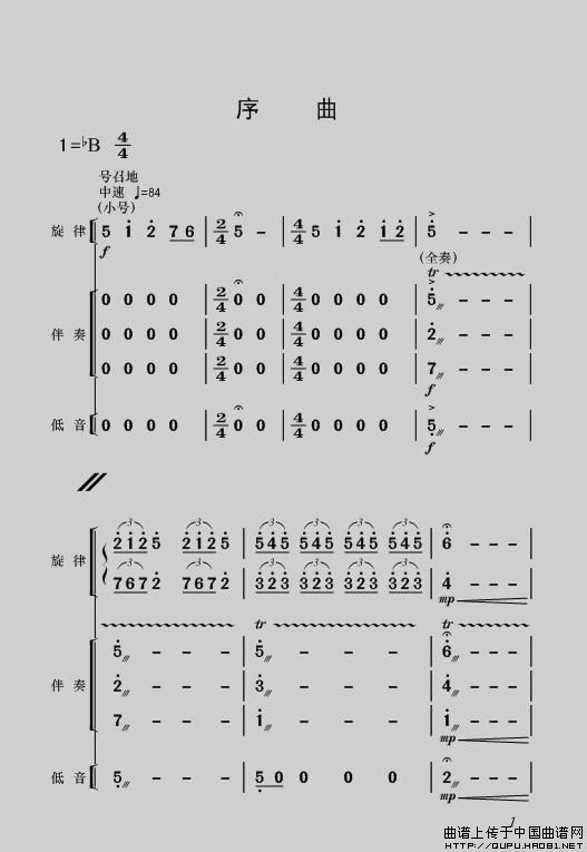 现代舞剧《白毛女》全剧主旋律乐谱之序曲相关五线谱