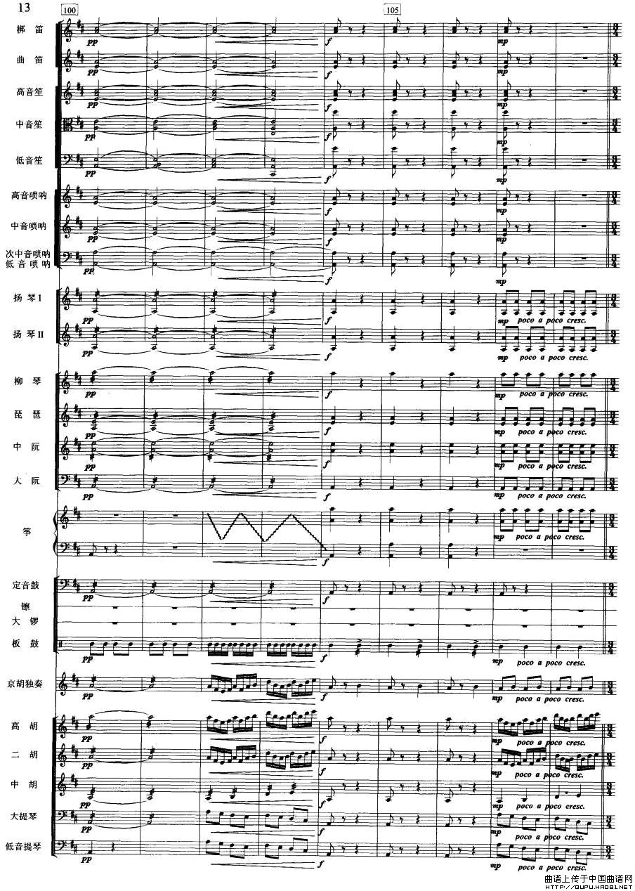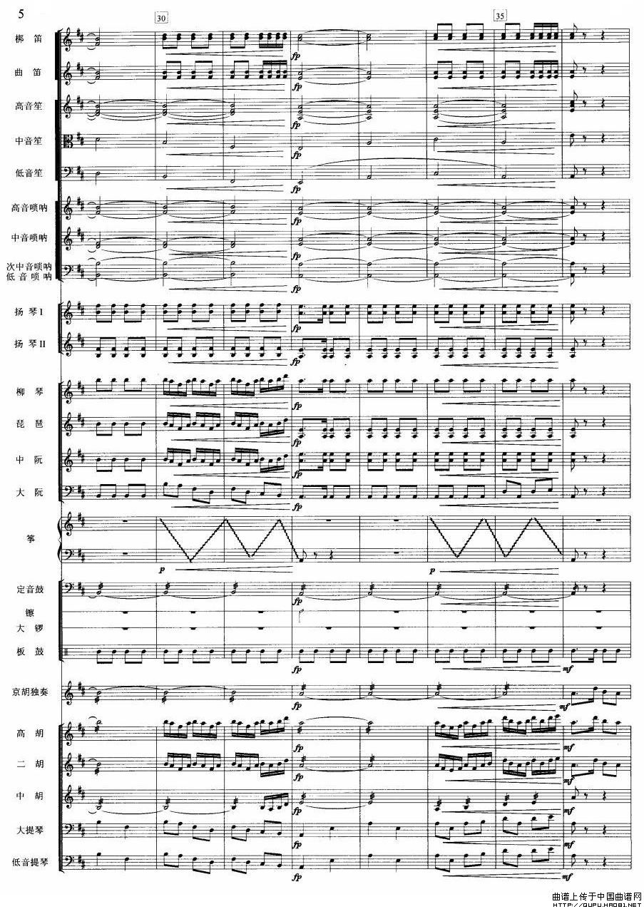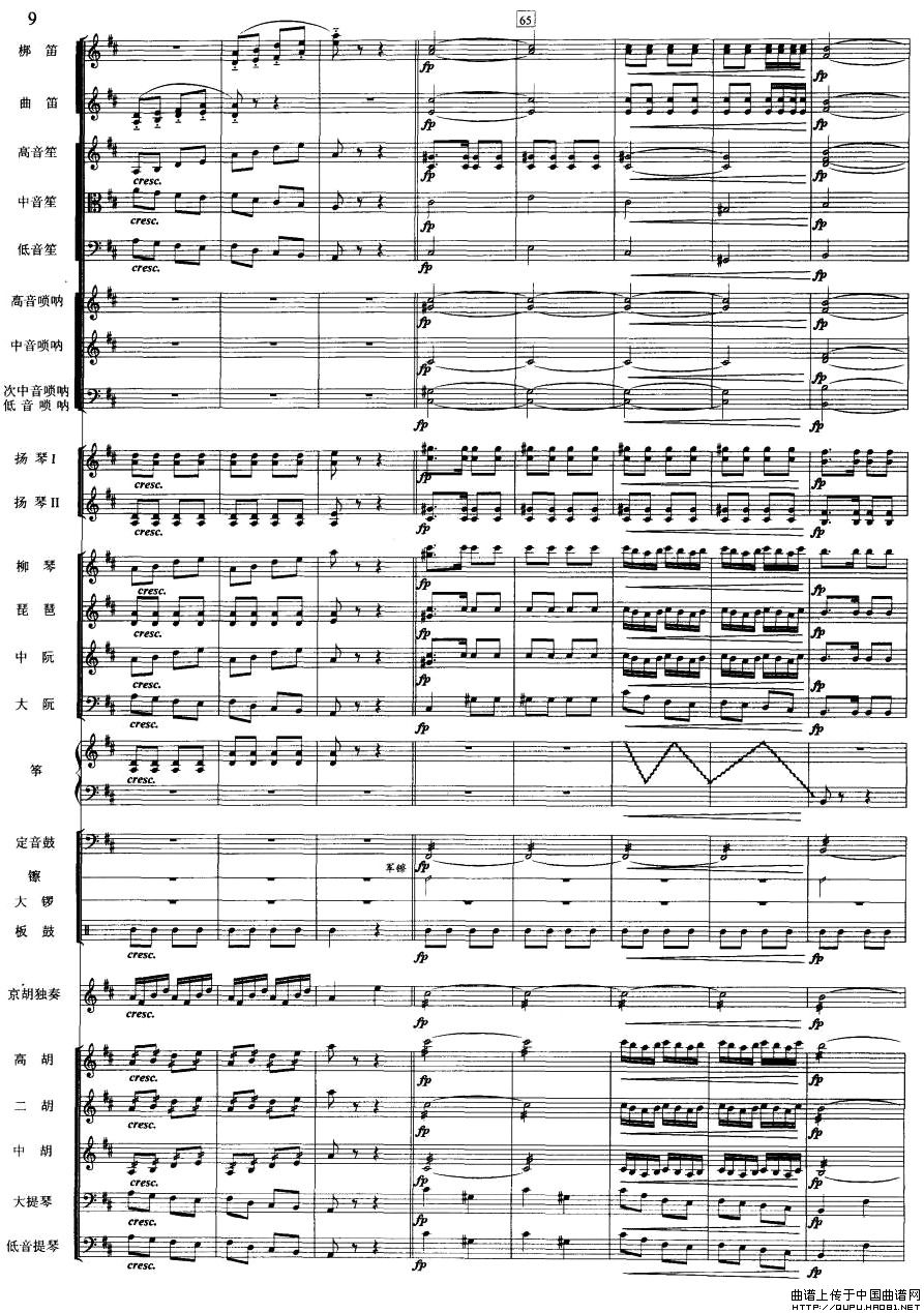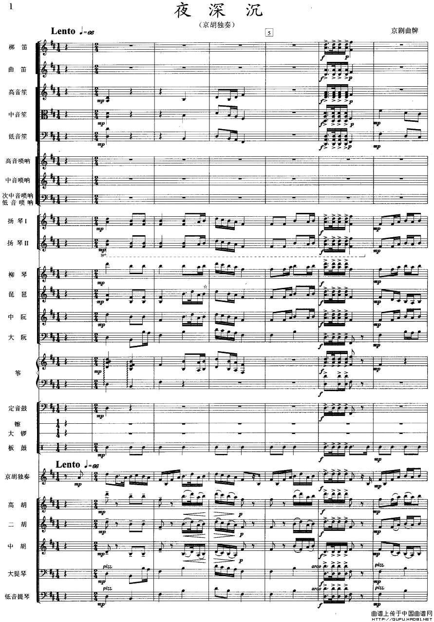 夜深沉(京胡+伴奏总谱、五线谱版)相关五线谱