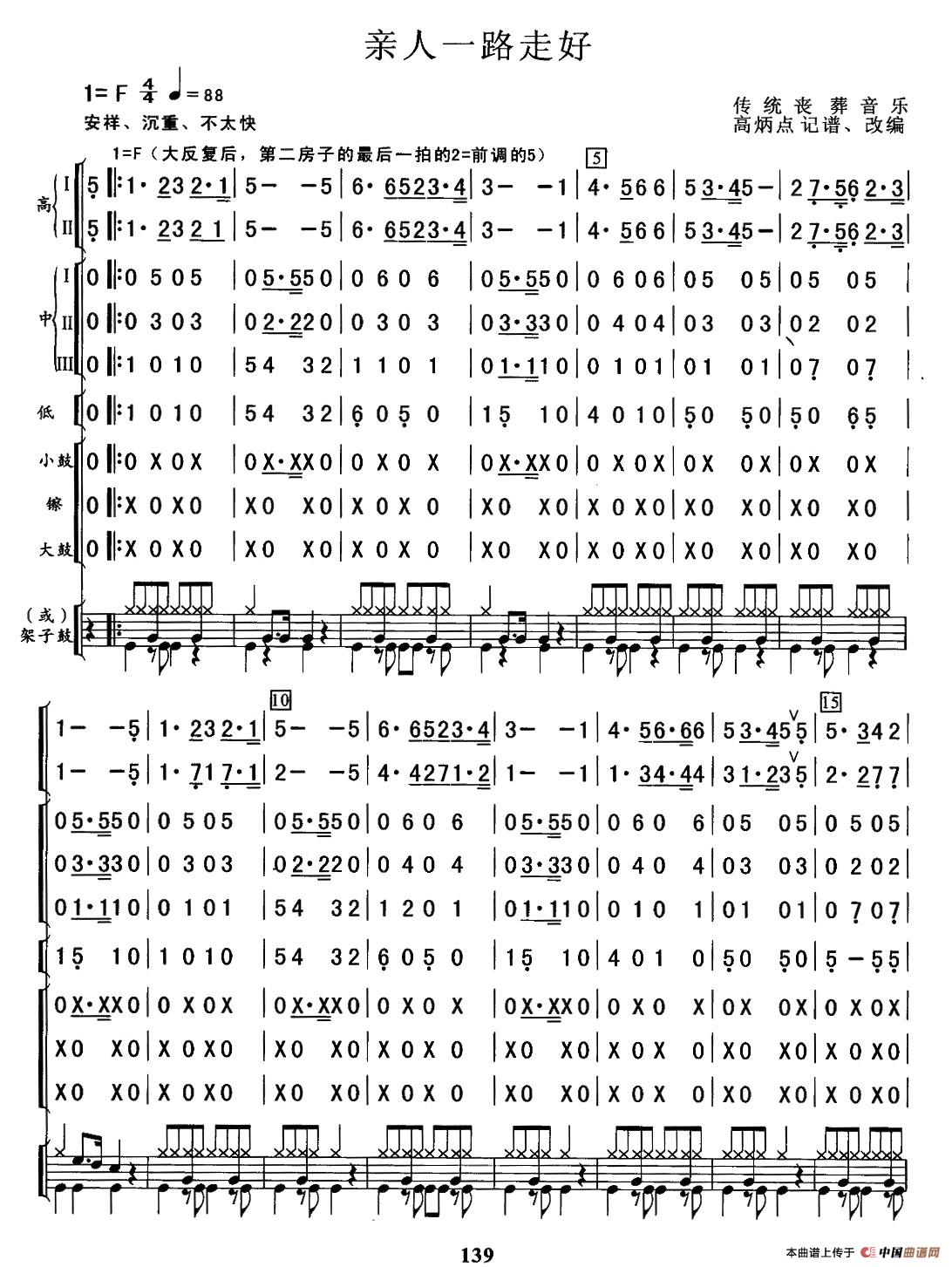 亲人一路走好(总谱)相关五线谱