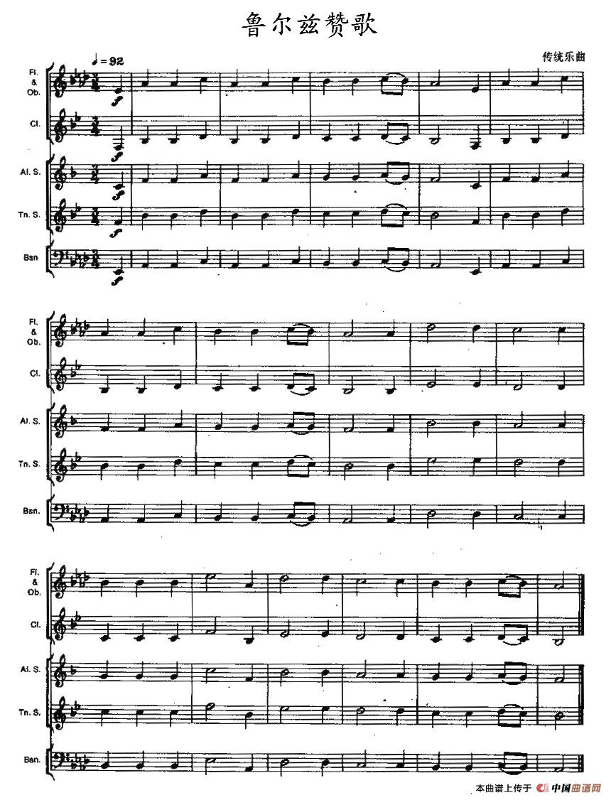 鲁尔兹赞歌(木管乐器合奏)相关五线谱