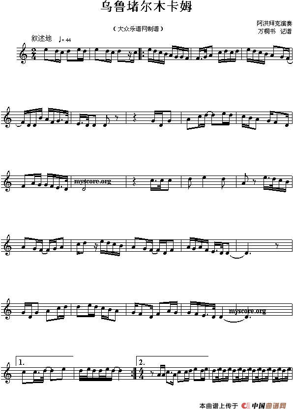 乌鲁堵尔木卡姆(新疆木卡姆曲目旋律、五线谱)