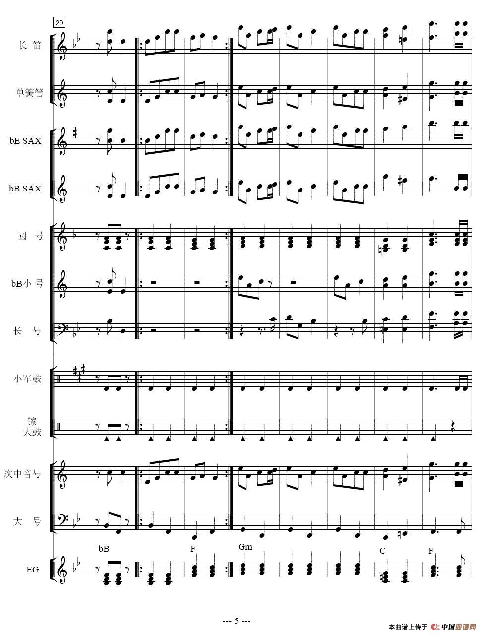 咱们工人有力量(管乐合奏总谱)相关五线谱