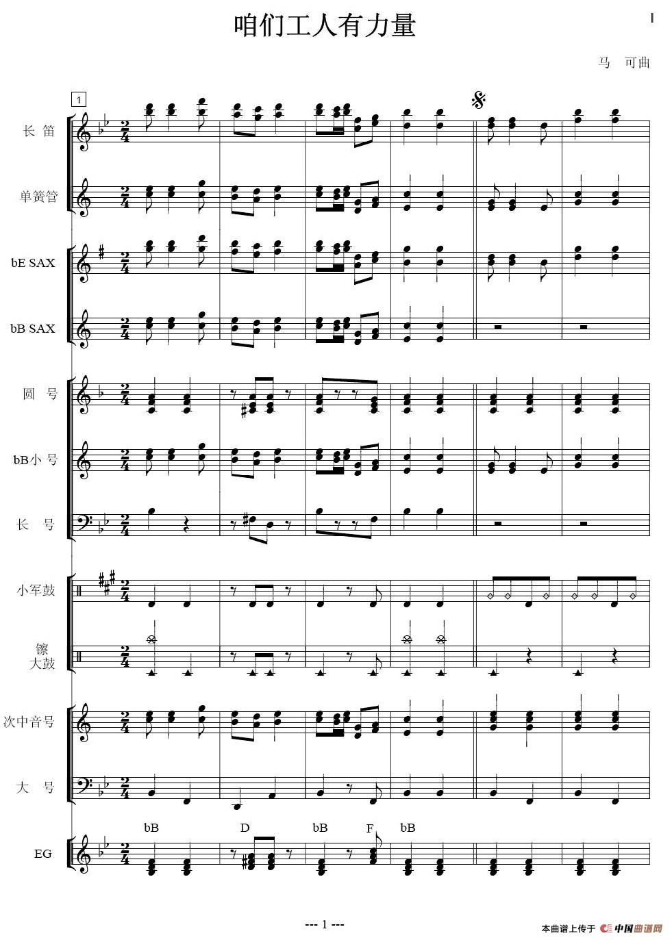 咱们工人有力量(管乐合奏分谱)