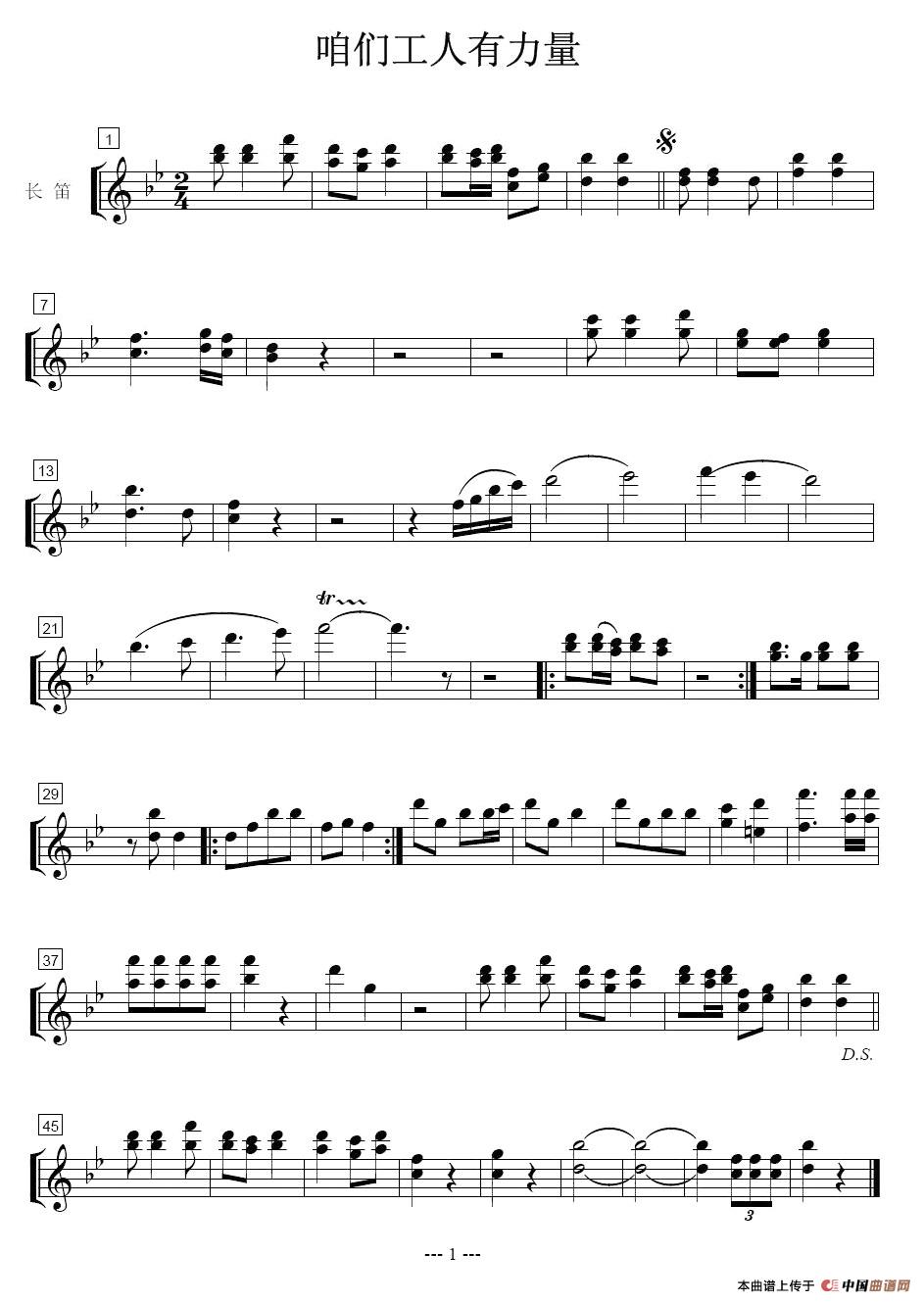 咱们工人有力量-长笛分谱