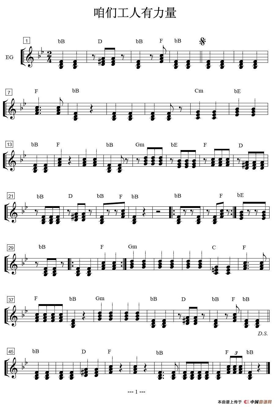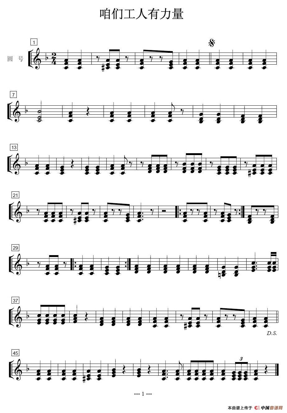 咱们工人有力量-大号分谱