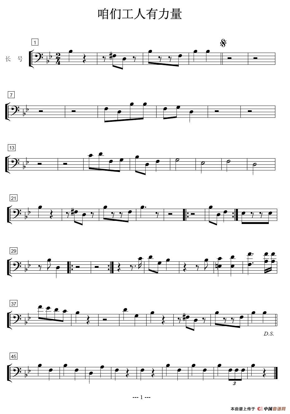咱们工人有力量-次中音号分谱