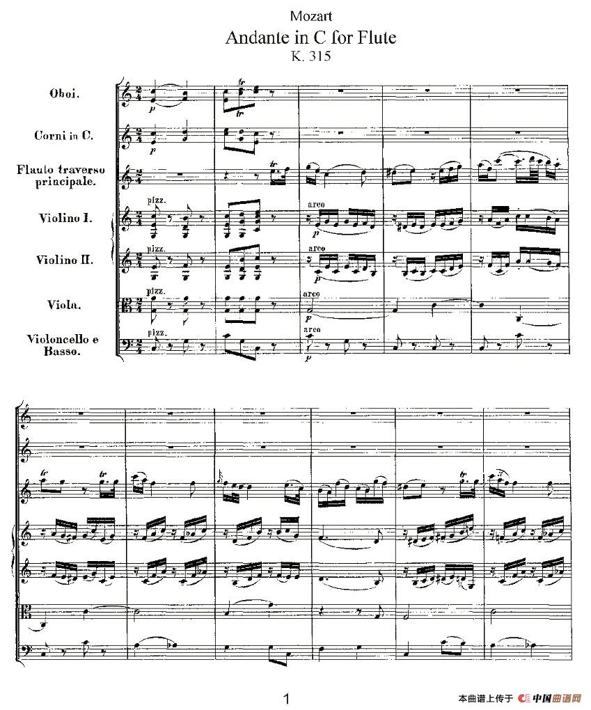 Andante in C for Flute, K.315(C大调长笛的行板、总谱)相关五线谱
