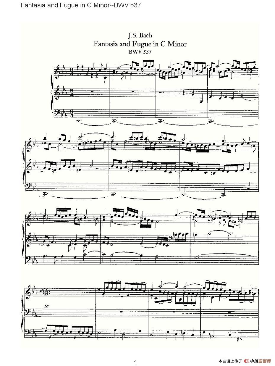 - Fantasia and Fugue in C Minor (with incomplete fugue)--BWV 562 (管风琴谱)