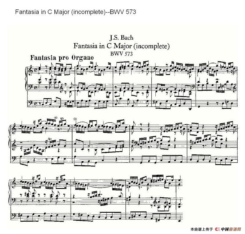 ohann Sebastian Bach (约翰·塞巴斯蒂安·巴赫)曲谱推荐Fantasia in C Major--BWV 570 (管风琴谱)Fantasia in G Major--BWV 572 (管风琴谱)