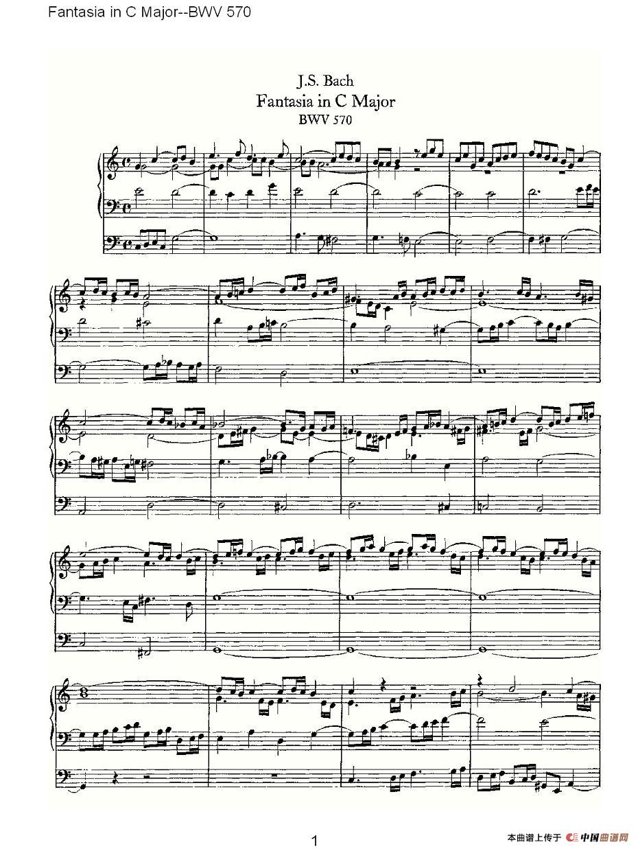 ohann Sebastian Bach (约翰·塞巴斯蒂安·巴赫)曲谱推荐Fantasia in C Major (incomplete)--BWV 573 (管风琴谱)Fantasia in G Major--BWV 572 (管风琴谱)