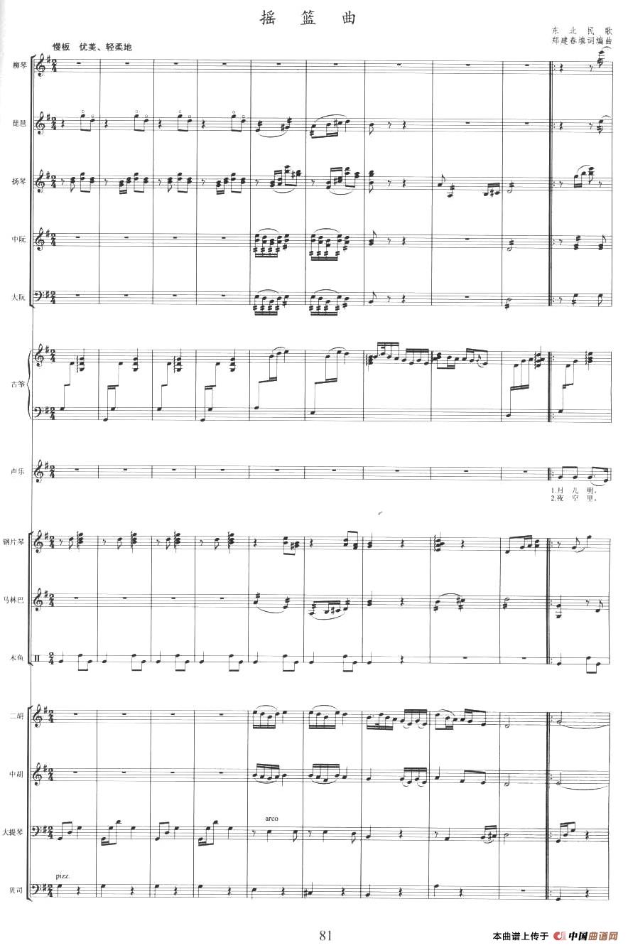摇篮曲(乐队伴奏总谱)相关五线谱