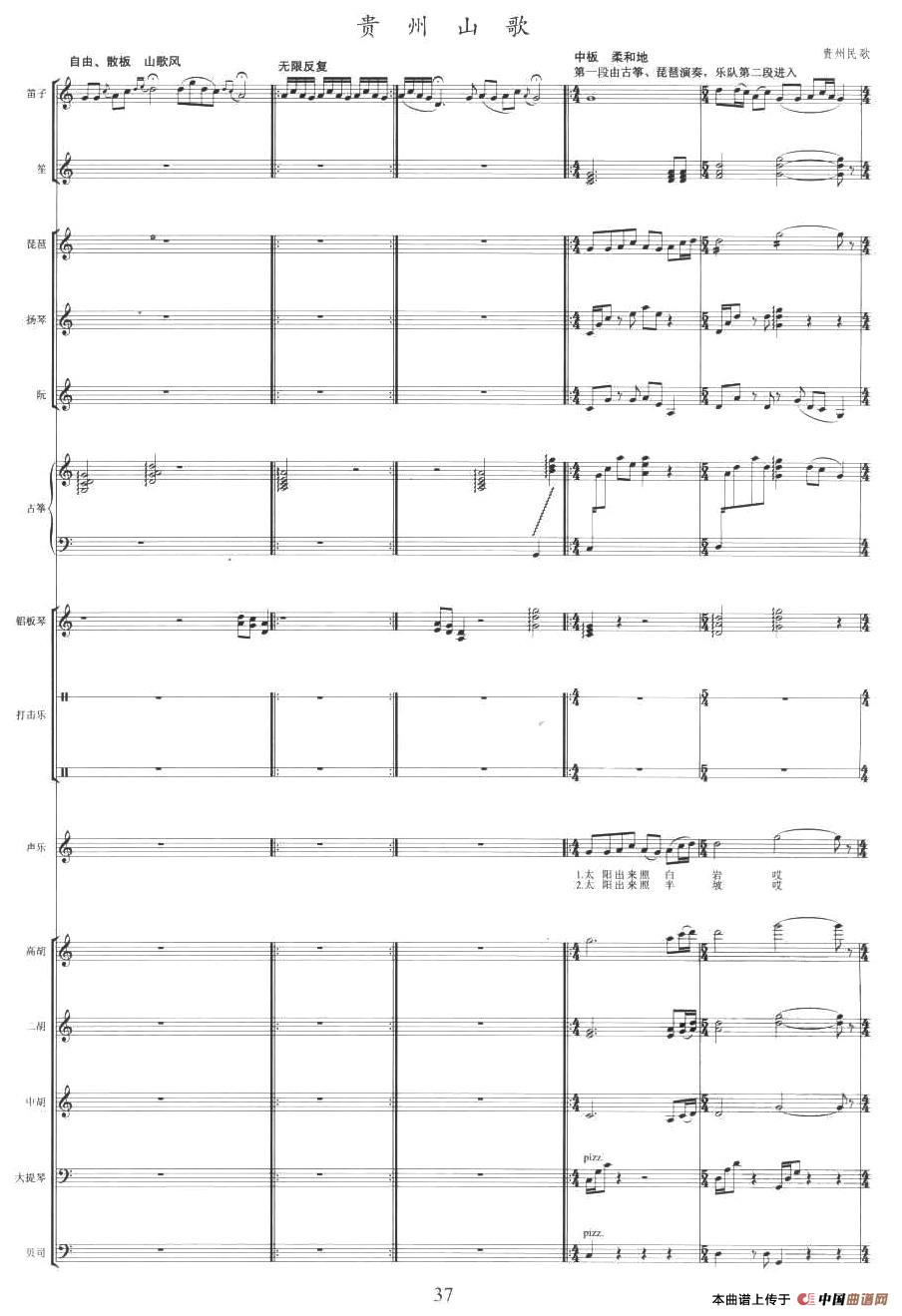 贵州山歌(乐队伴奏总谱)相关五线谱
