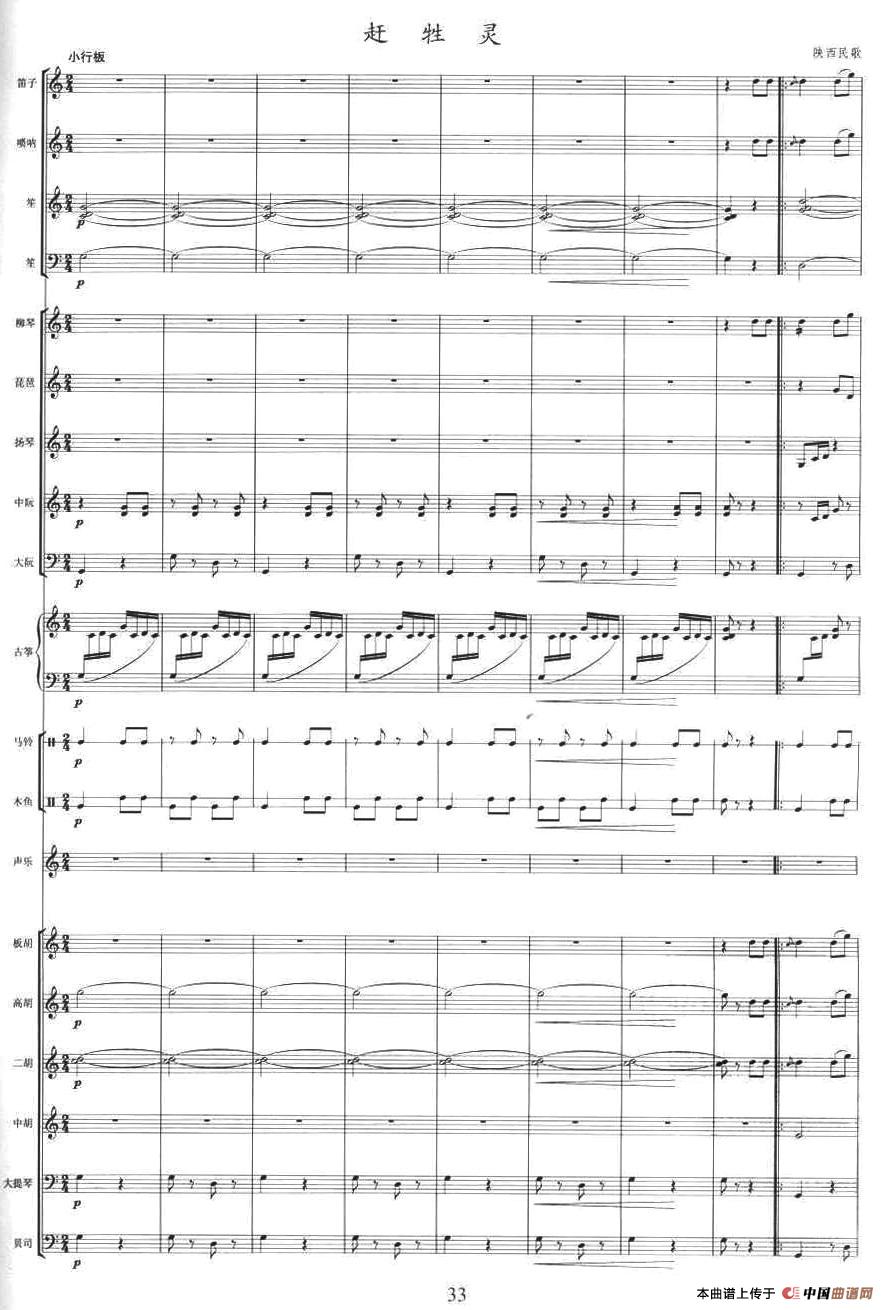 赶牲灵 (乐队伴奏总谱)相关五线谱