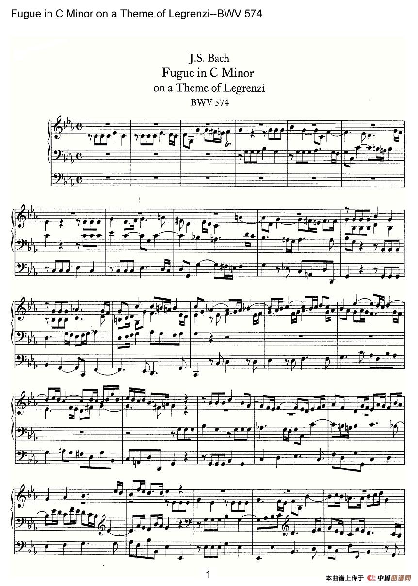 Fugue in C Minor on a Theme of Legrenzi--BWV 574 (管风琴谱)