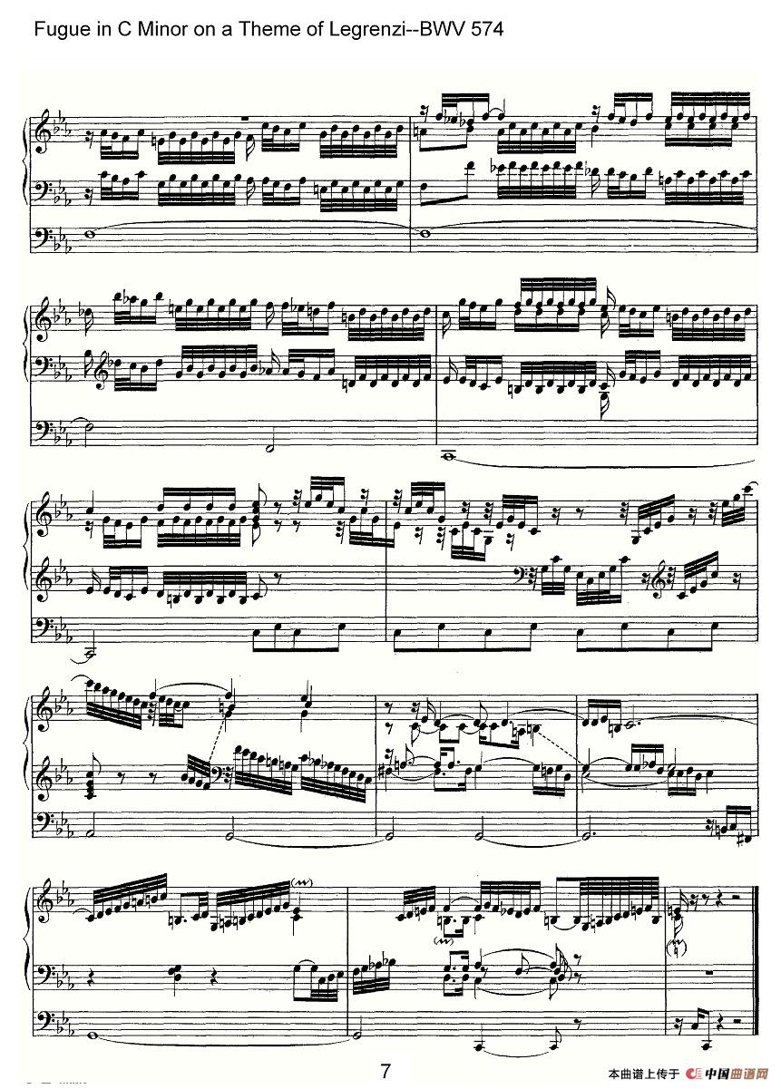 Fugue in C Minor on a Theme of Legrenzi--BWV 574(管风琴谱)相关五线谱
