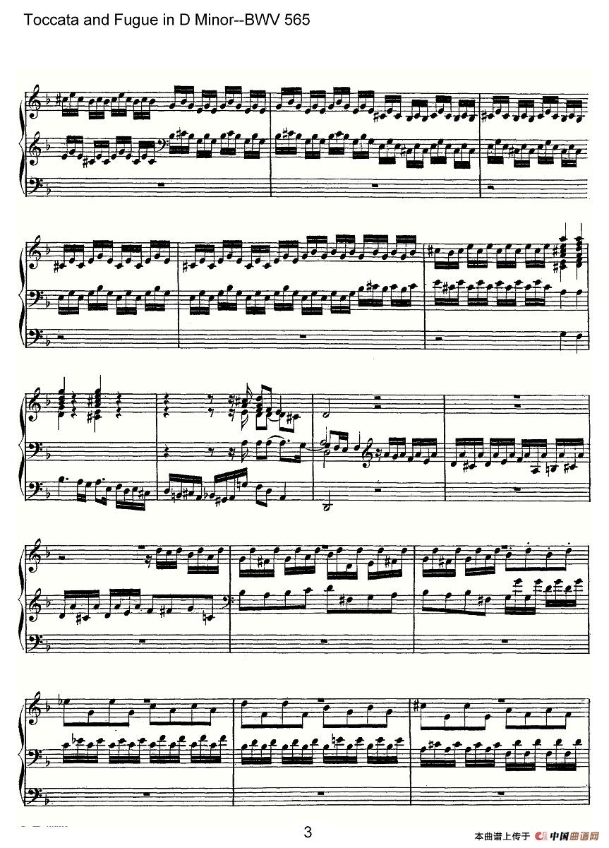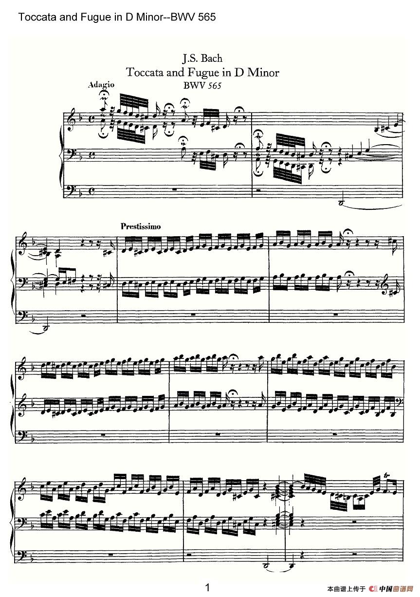 Toccata and Fugue in D Minor--BWV 565(管风琴谱)相关五线谱