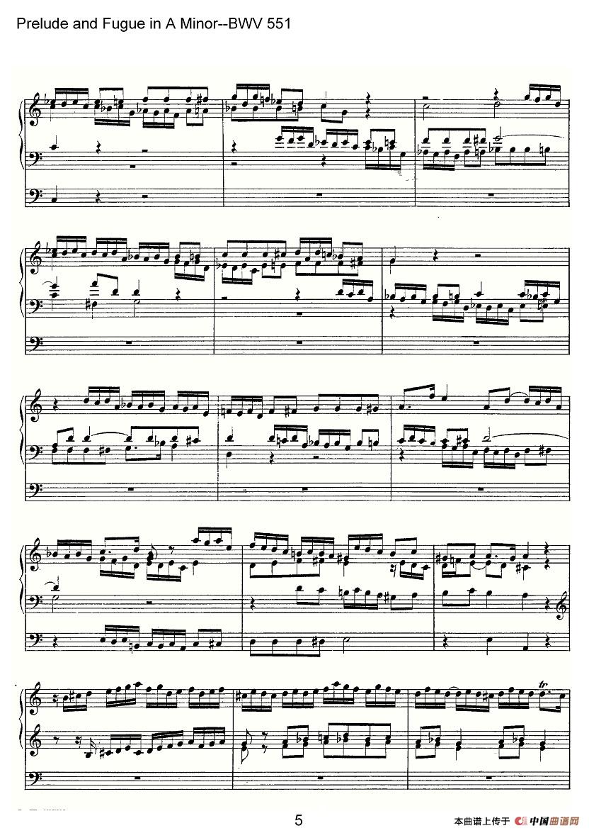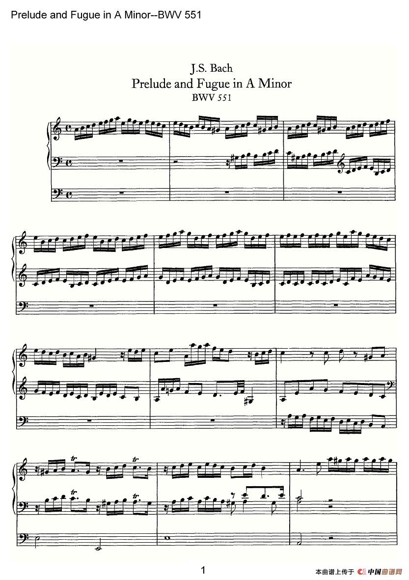 Prelude and Fugue in A Minor--BWV 551(管风琴谱)相关五线谱
