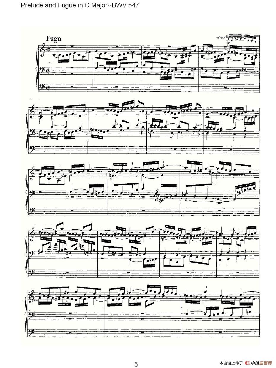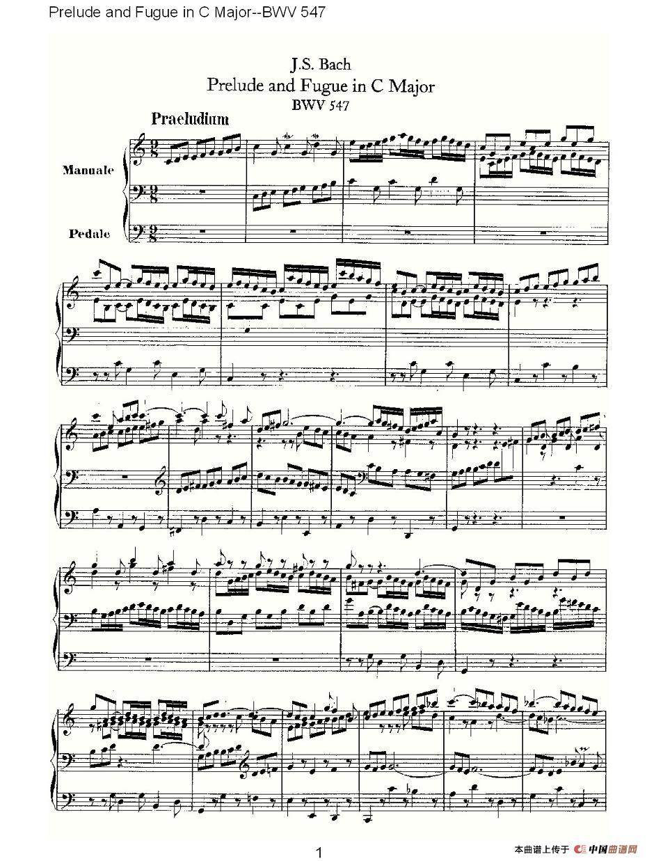 Prelude and Fugue in C Major--BWV 547 (管风琴谱)相关五线谱