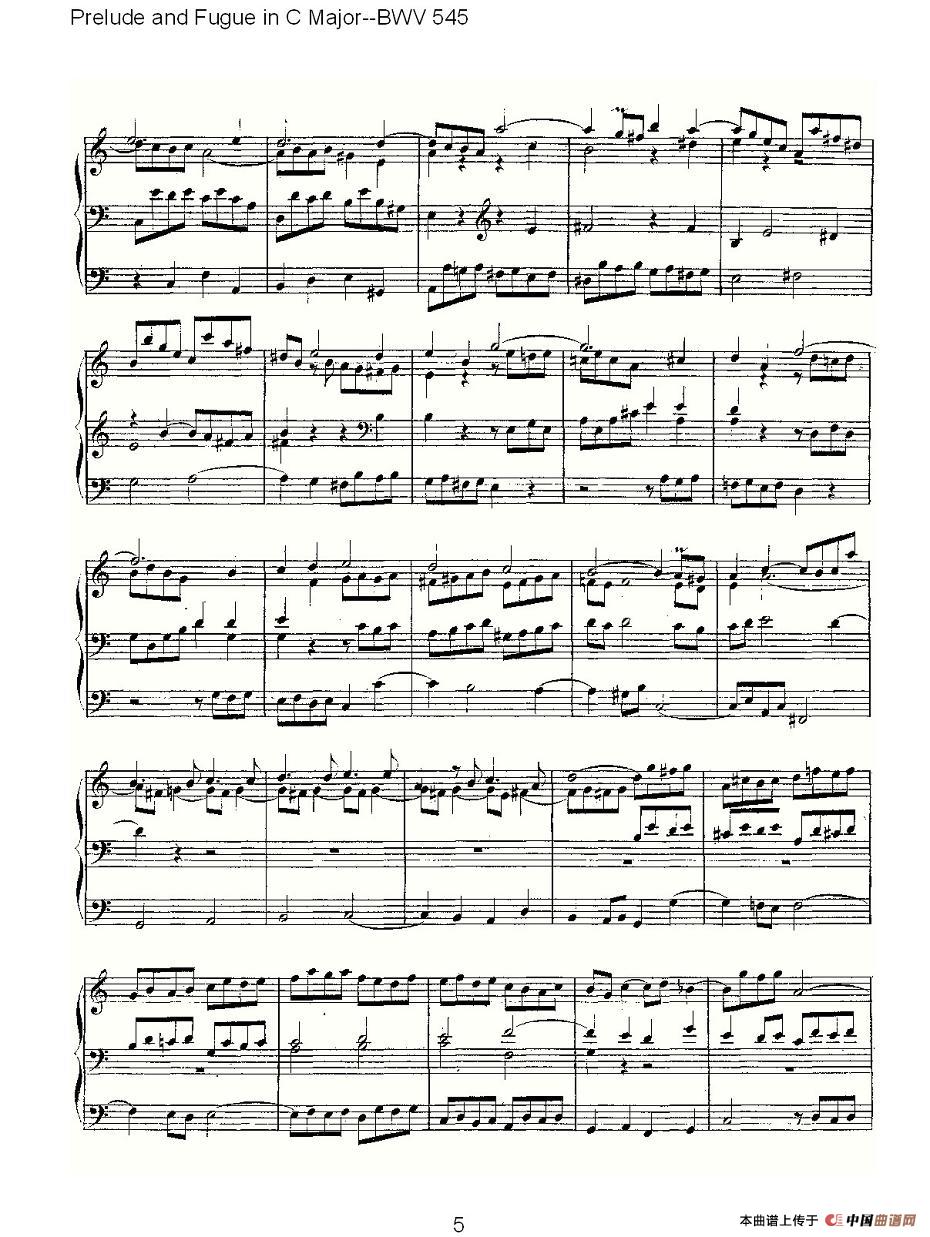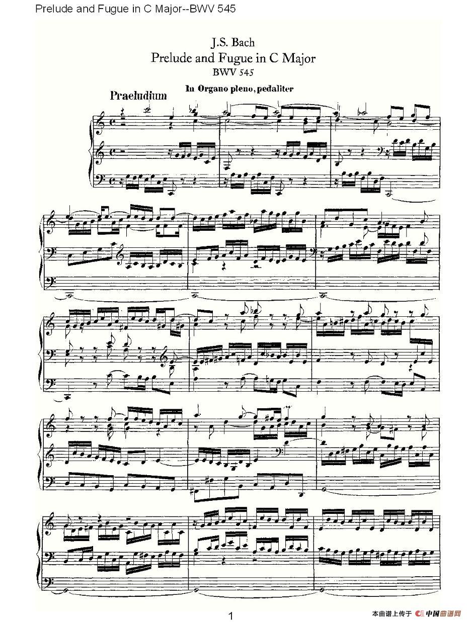 Prelude and Fugue in C Major--BWV 545 (管风琴谱)相关五线谱