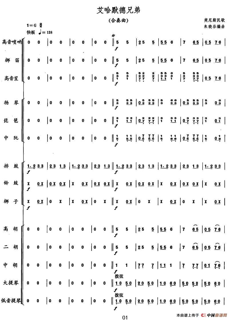 艾哈默德兄弟(突尼斯民歌、合奏总谱)相关五线谱
