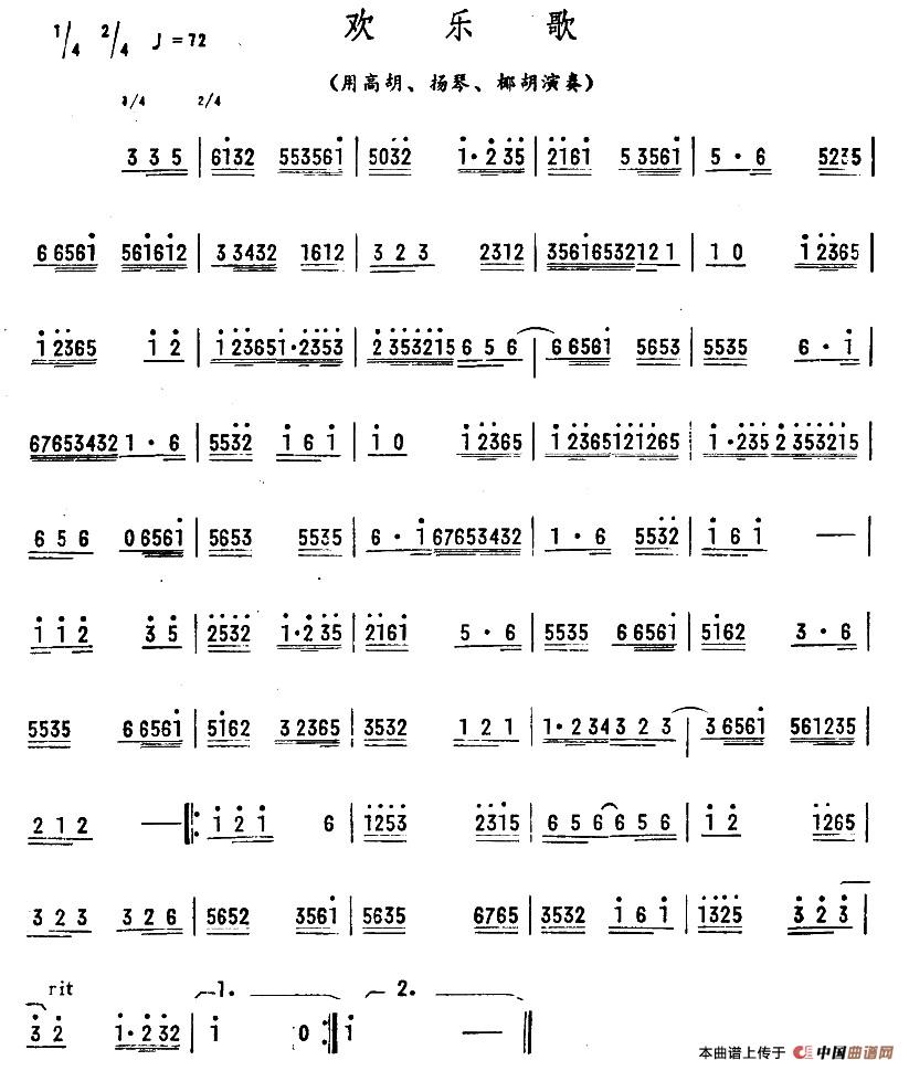 欢乐歌(广东乐曲)相关五线谱