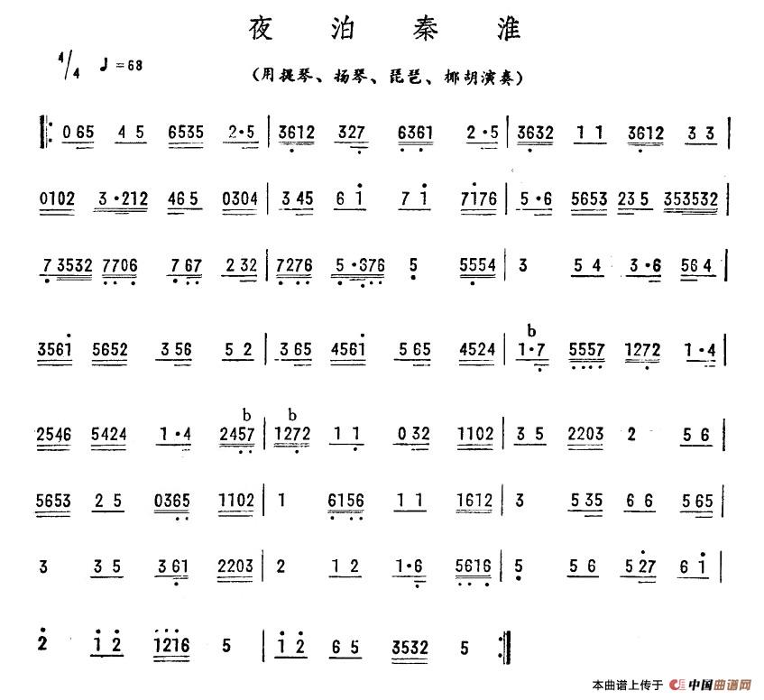 夜泊秦淮相关五线谱