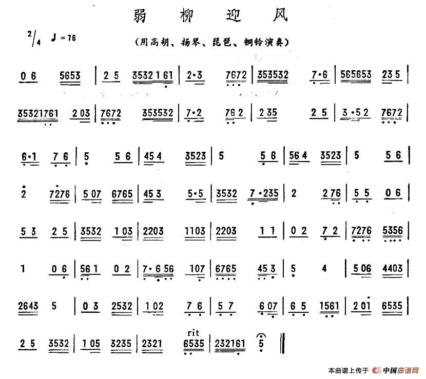 弱柳迎风相关五线谱