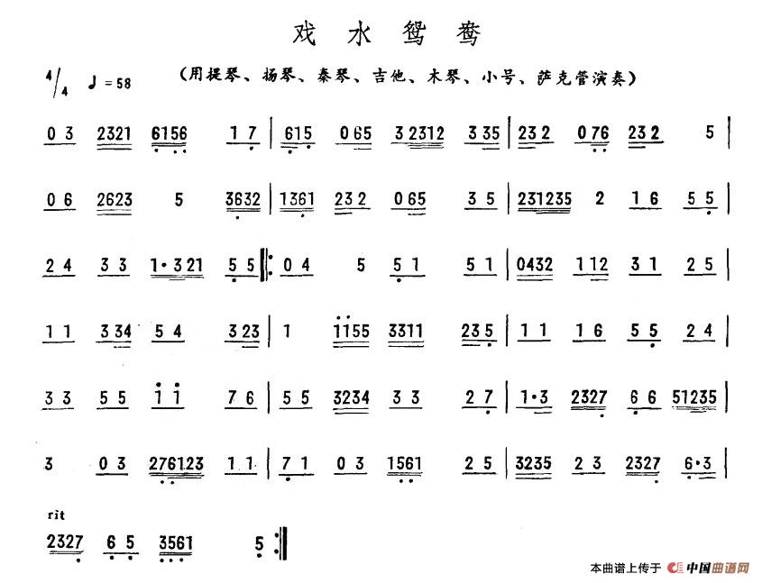 戏水鸳鸯相关五线谱