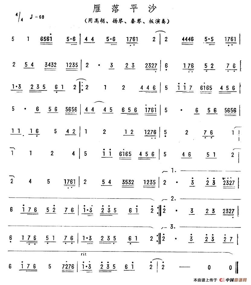 雁落平沙相关五线谱