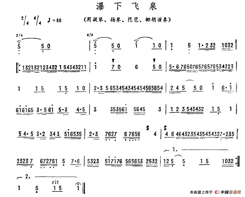 瀑下飞泉相关五线谱