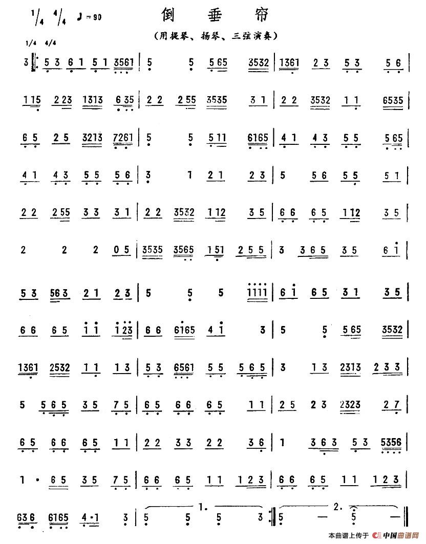 倒垂帘(广东乐曲)相关五线谱
