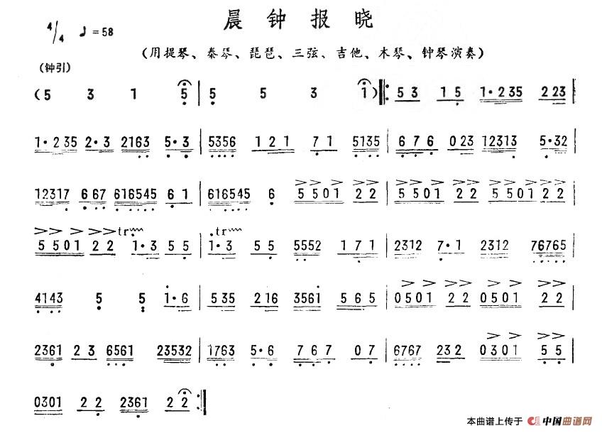 晨钟报晓相关五线谱