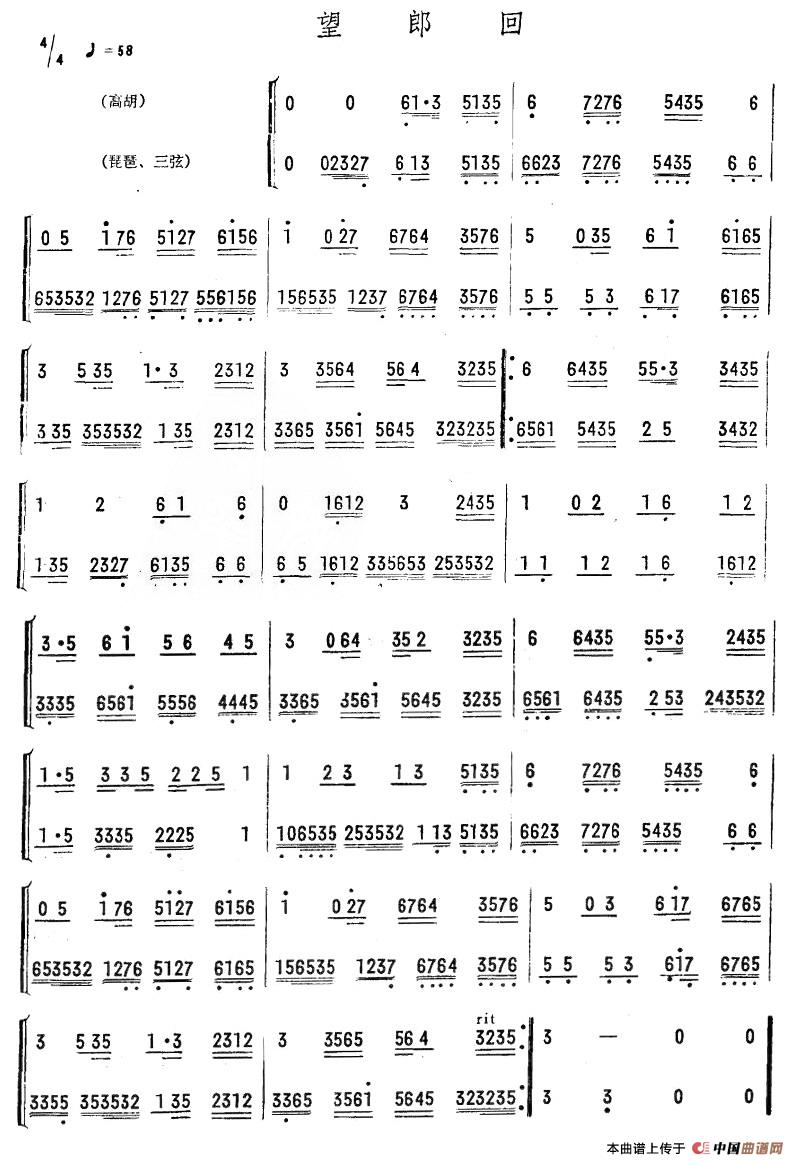 望郎回相关五线谱