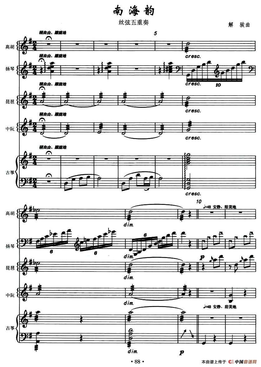 南海韵(丝弦五重奏)相关五线谱