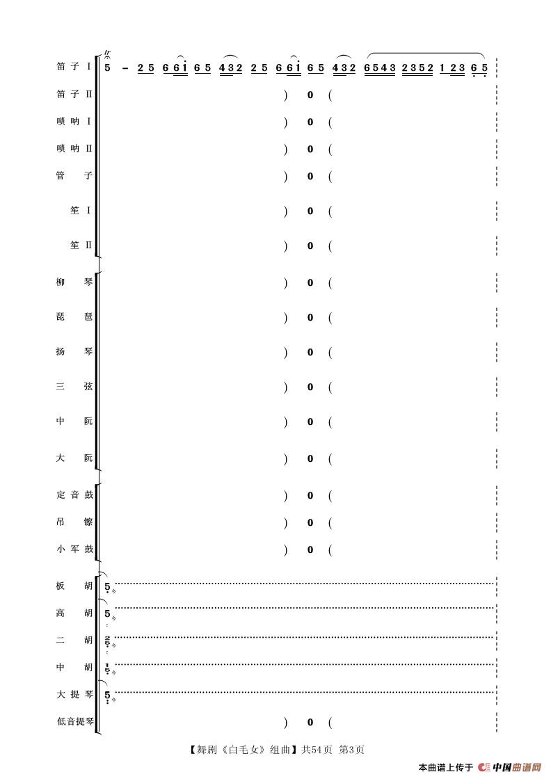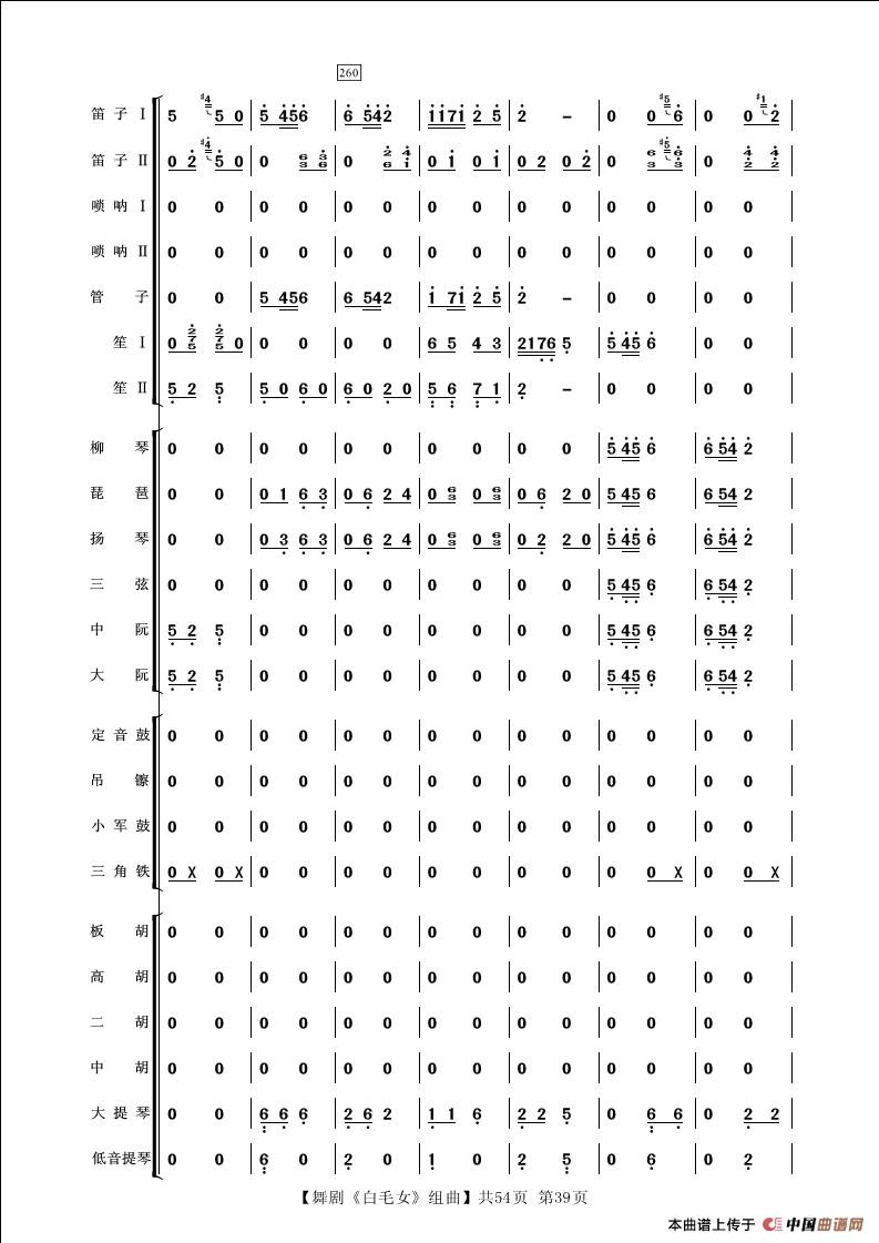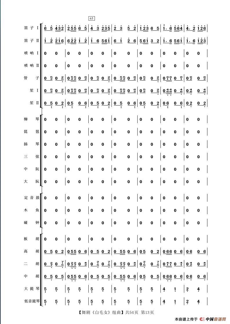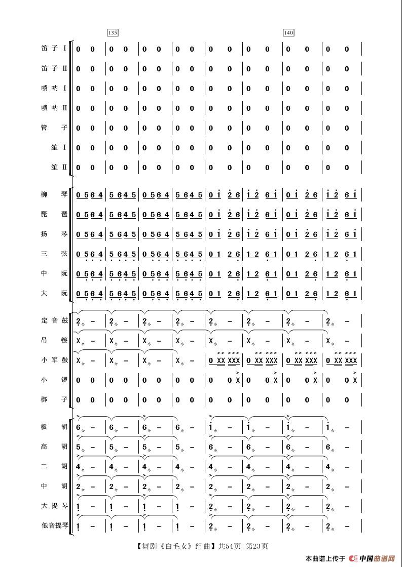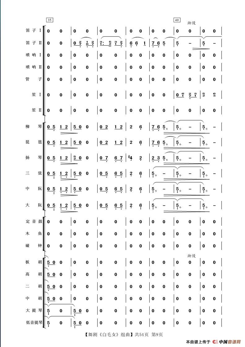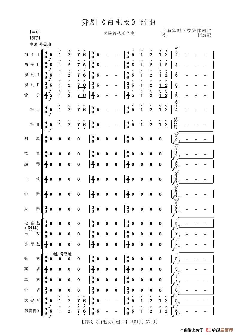 舞剧《白毛女》组曲(民族管弦乐合奏)相关五线谱