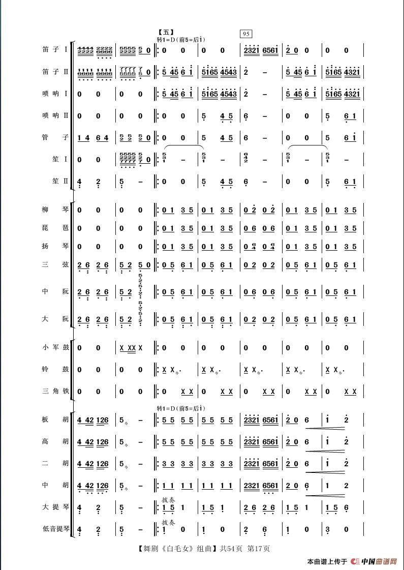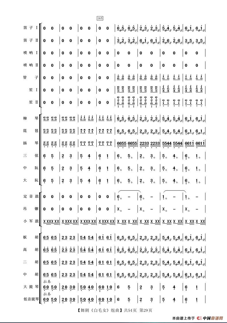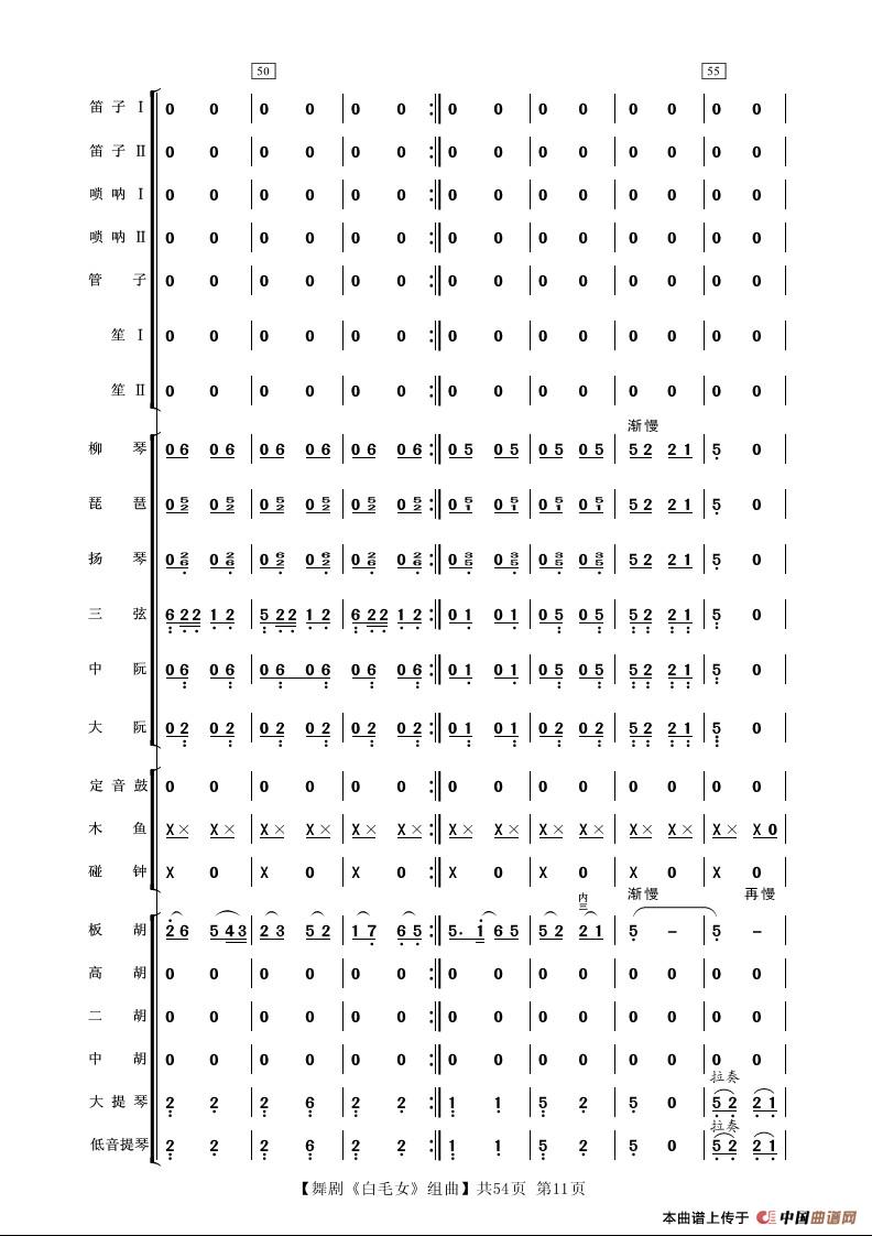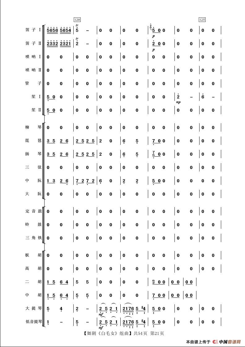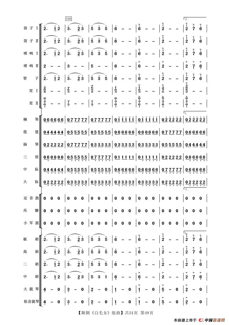 舞剧《白毛女》组曲(民族管弦乐合奏)相关五线谱