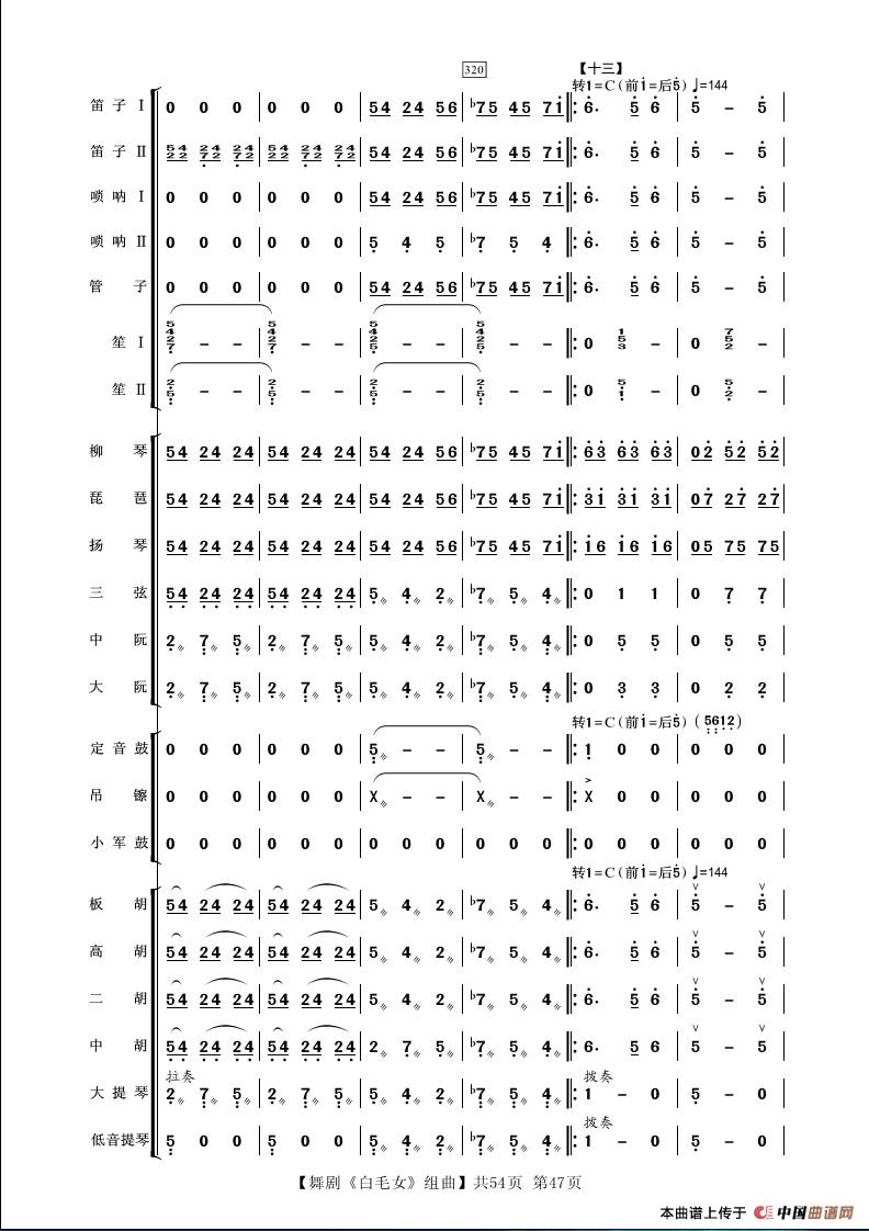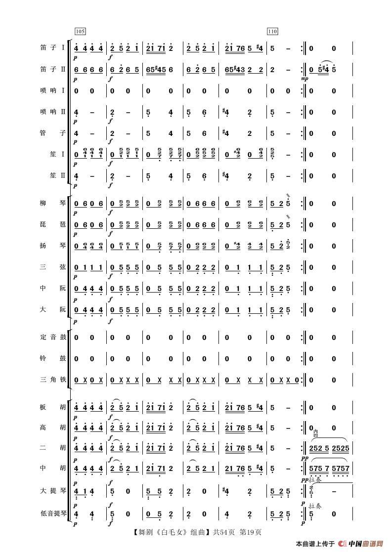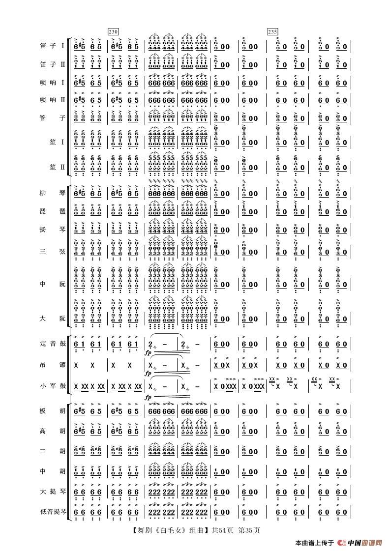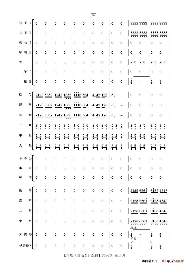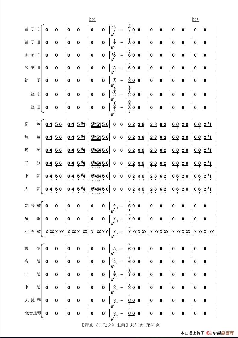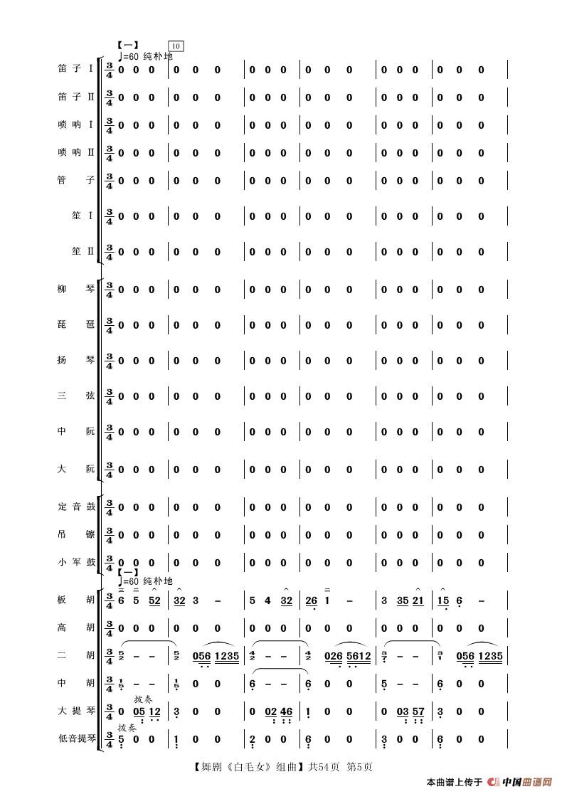 舞剧《白毛女》组曲(民族管弦乐合奏)相关五线谱
